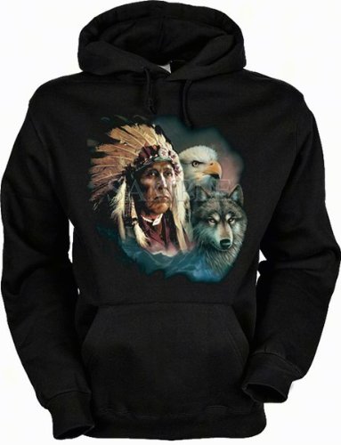 Indianer Kapuzen Sweatshirt: Indianer mit Wolf und Adler (Größe: M)
