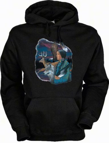 Indianer Kapuzen Sweatshirt: Indianerin mit Wolf und Hirsch (Größe: L)